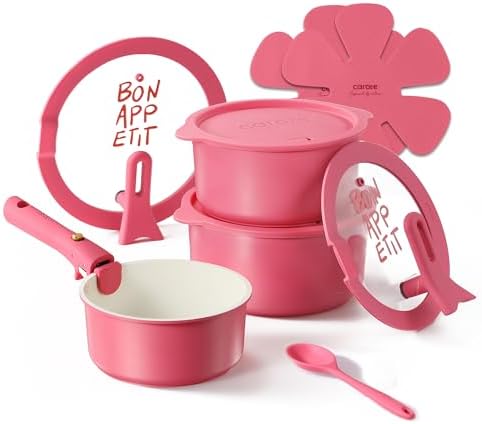 CAROTE Ceramic Sauce Pan Sets with Stand-Up Lid 2QT& 3QT & 4QT