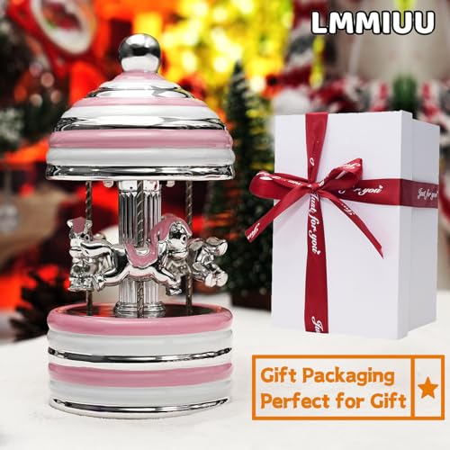 Carousel Music Box Gift Wrapped Ceramic Musical Carousel Color-Changing Lights Music Boxes for Girls Boys Kids Daughter Son Granddaughter Wife Mom Women Birthday Christmas (Pink Circle)