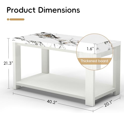 Coffee Table 40" Faux Marble White Oak 2-Tier Rectangle Thickened Modern Wooden Center Table for Living Room