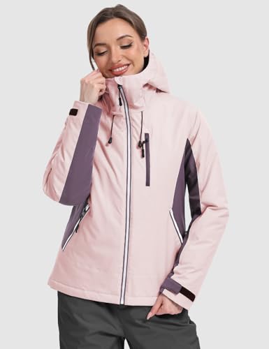 GEMYSE Women's Waterproof Winter Jacket Ski Snow Jacket Windproof Warm Rain Coat Insulated Sonwboard Hooded Jacket