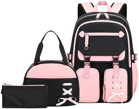 3pcs Cute Aesthetic Girls Backpack with Lunch Box Pencil Case Set
