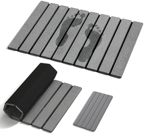 Foldable Stone Bath Mat for Bathroom with Absorbing Tray