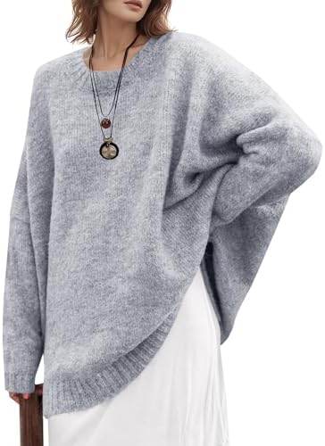 UNCLECAT Women's Oversized Sweaters Trendy Knit Sweater Tops Long Sleeve Crewneck Casual Pullover