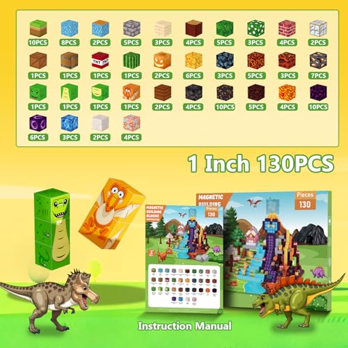 154PCS Magnetic Blocks Mine Magnet World Block Cubes Toy with Magnet Board for Kids Ages 4-8