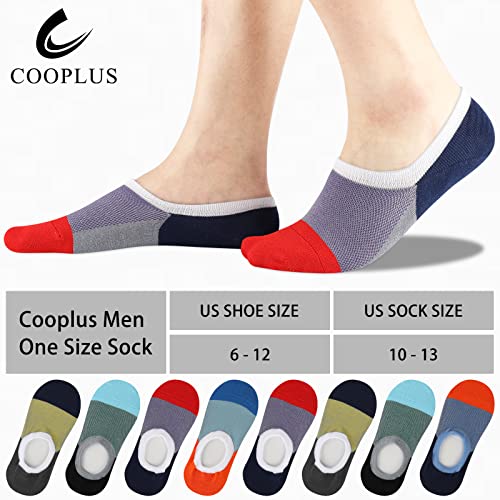 COOPLUS Mens No Show Socks Cotton Low Cut Non Slip Casual Socks Invisible Flat Boat Socks (8 Pairs)