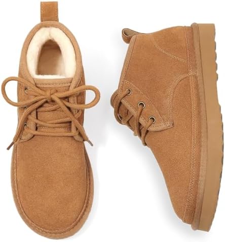 Litfun Fur Lined Ankle Boots for Women Genuine Suede Mini Booties Short Lace Up Snow Boots